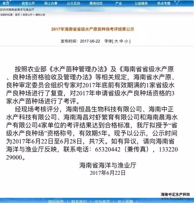 公司以优异的成绩通过了评审,并于当月22日被省海洋与渔业厅拟授予“省级水产良种场”资格称号,公示于政府网站上。
