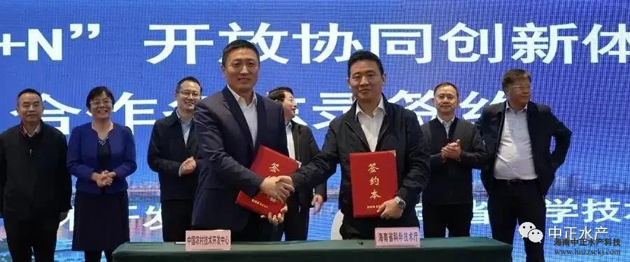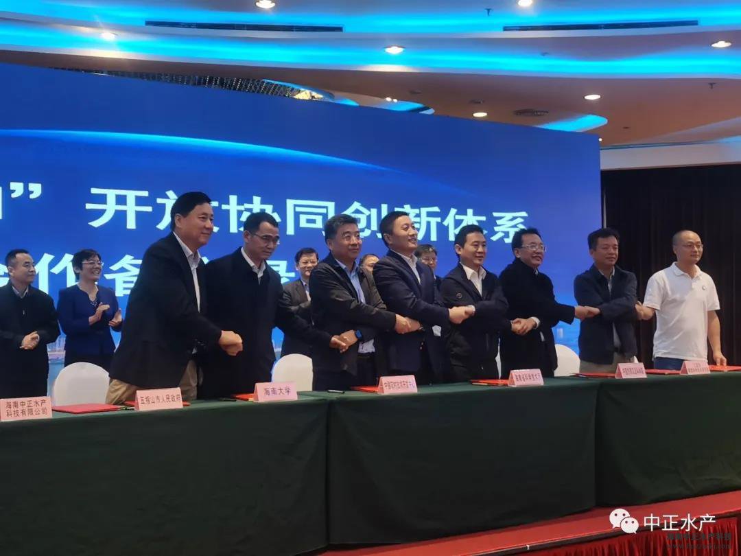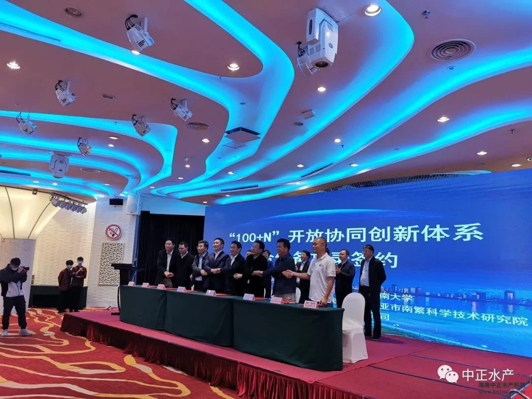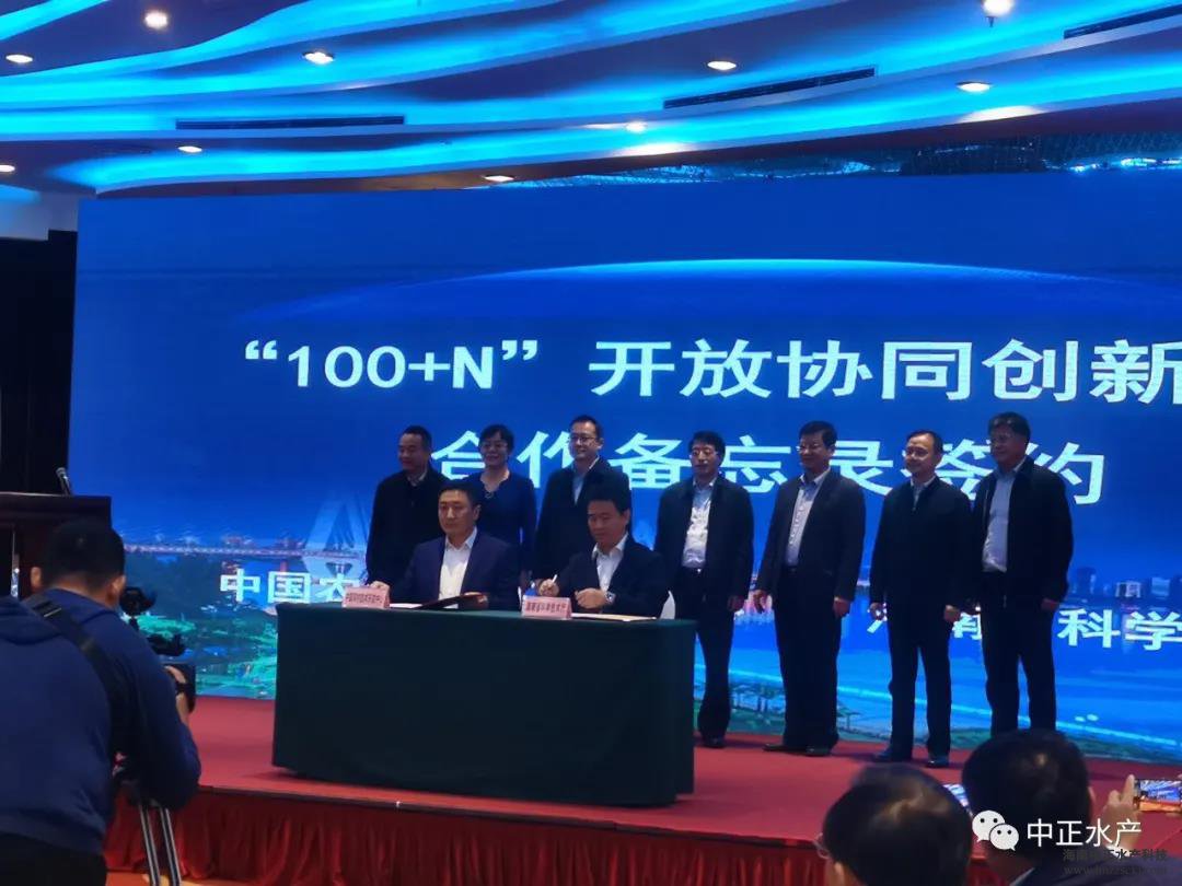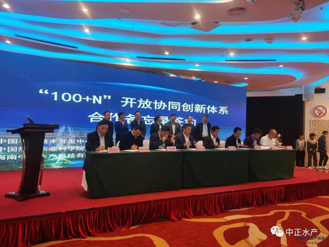 会上,农村中心和海南省科技厅与海南大学、中国热带农业科学研究院、三亚市南繁科学技术研究院、五指山市人民政府、海南广陵高科实业有限公司、米兰体育官网登录入口等6家单位签订了《“100+N”开放协同创新体系建设合作备忘录》。米兰体育官网登录入口作为中正水产星创天地的运营单位,也正式成为海南省“100+N”体系的签约单位。中正水产董事长雷夏雨到场签约,副总裁王平作为企业代表发言。