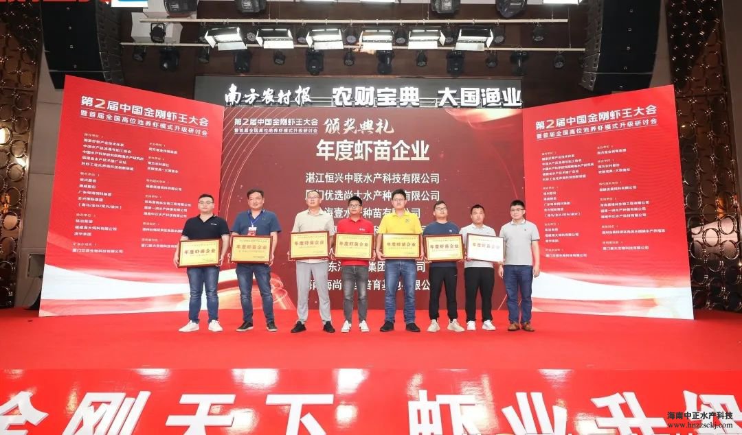 海南中正在此次大会中荣获“年度虾苗企业”称号。中正水产成立8年来,坚持品质立足,不断选育南美白对虾品种、优化斑节对虾繁育、升级罗氏沼虾繁育流程,确保种苗品质过硬、虾苗稳定。