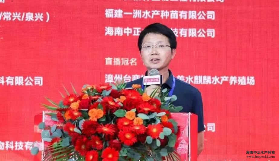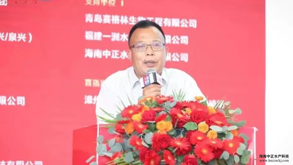 中正水产总经理、海南省对虾养殖协会会长王平主持“总裁沙龙论坛”环节。