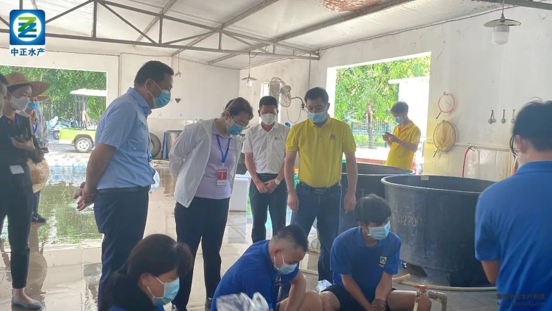 要防控疫情,也要安全生产。在中正水产总裁雷秋凉和副总裁王平的带领下,调研团队实地考察了育苗部、海水鱼苗部、育种中心等主要生产部门。