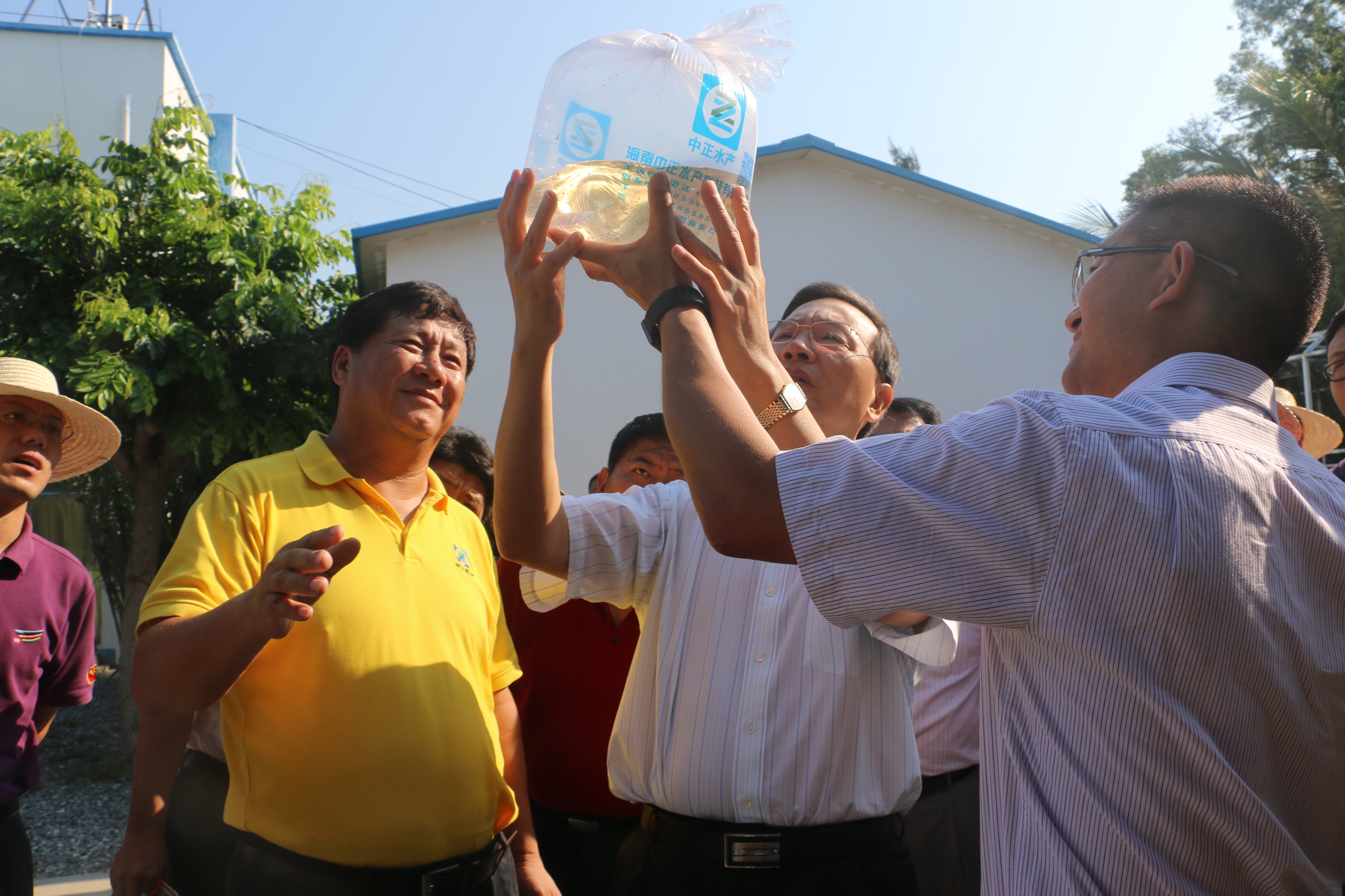 2016年5月6日上午,由省委副书记李军带队,省委办公厅副秘书长夏斐、东方市委书记吉明江、市长邓敏、政法委书记张大海及相关部门负责人等调研组员全程陪同,一行冒着高温天气,深入米兰体育官网登录入口(如下简称“中正公司”)开展调研产业结构调整、深化经营管理等工作。中正公司董事长雷夏雨、副董事长雷秋凉、总经理王平全程接待陪同调研组,调研组首先在中正公司一楼会议室召开了座谈会,了解中正公司的生产经营和战略发展状况。在座谈会上,总经理王平以《培育良种虾苗,带动虾业发展》为主题,详细地汇报了全球对虾养殖情况及发展现状、特别是国内对虾养殖情况,简要介绍了国内对优质虾苗的强烈需求,种苗公司的产品质量参差不齐等突出问题,并介绍了中正公司在这一年多来取得的成绩,这与公司高度重视产品的品质,视质量为企业的生命密不可分,并明确公司今后的定位、发展战略以及公司面临的问题。