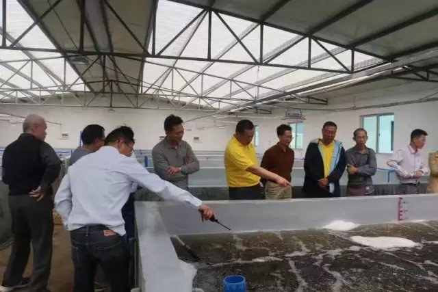 之后,在雷副董事长和王平总经理的带领下,考察团对全厂的水处理系统、亲虾车间和育苗车间的循环水处理系统,进行了现场考察。