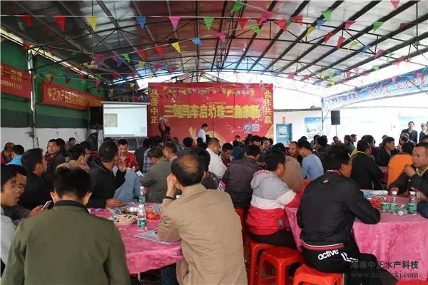 2017年4月12日,中正水产中山基地虾苗推介会如期举行,突如其来的降雨也未能减低养户高涨的与会热情,原计划150人的推介会足足来了220人,会场座无虚席。