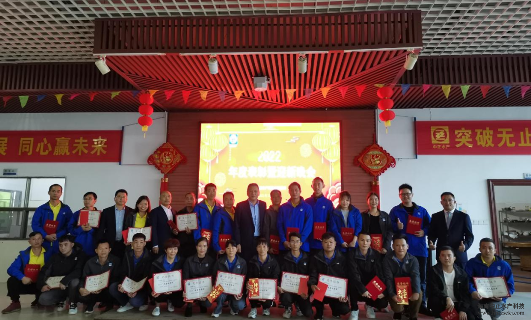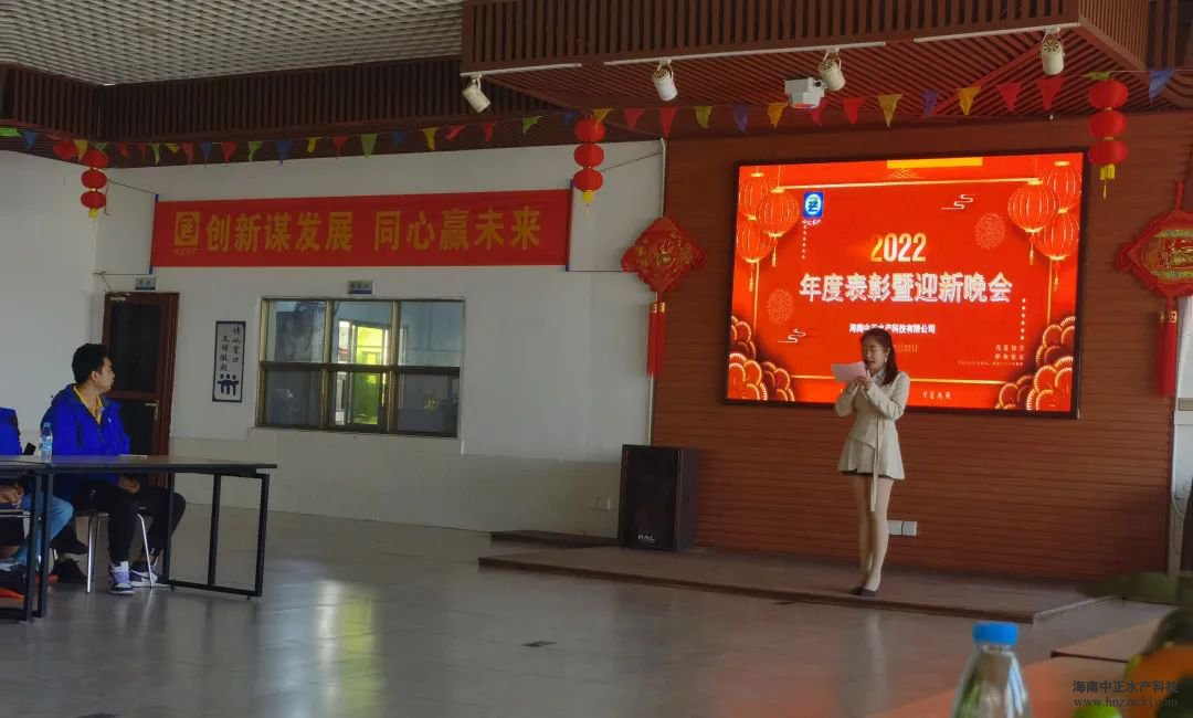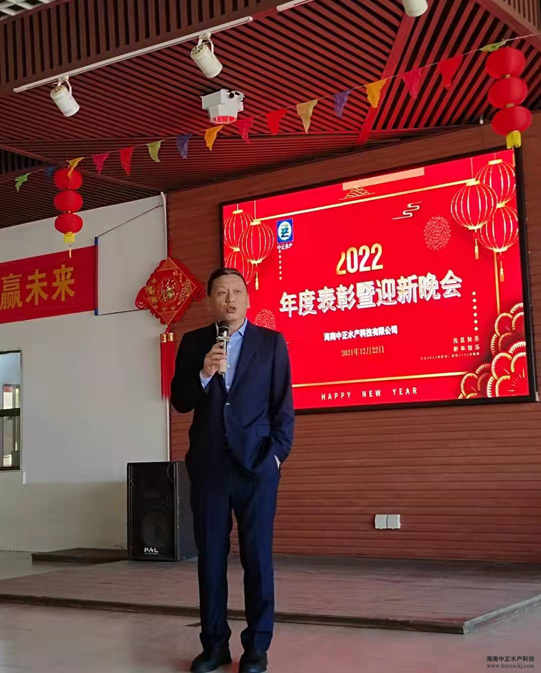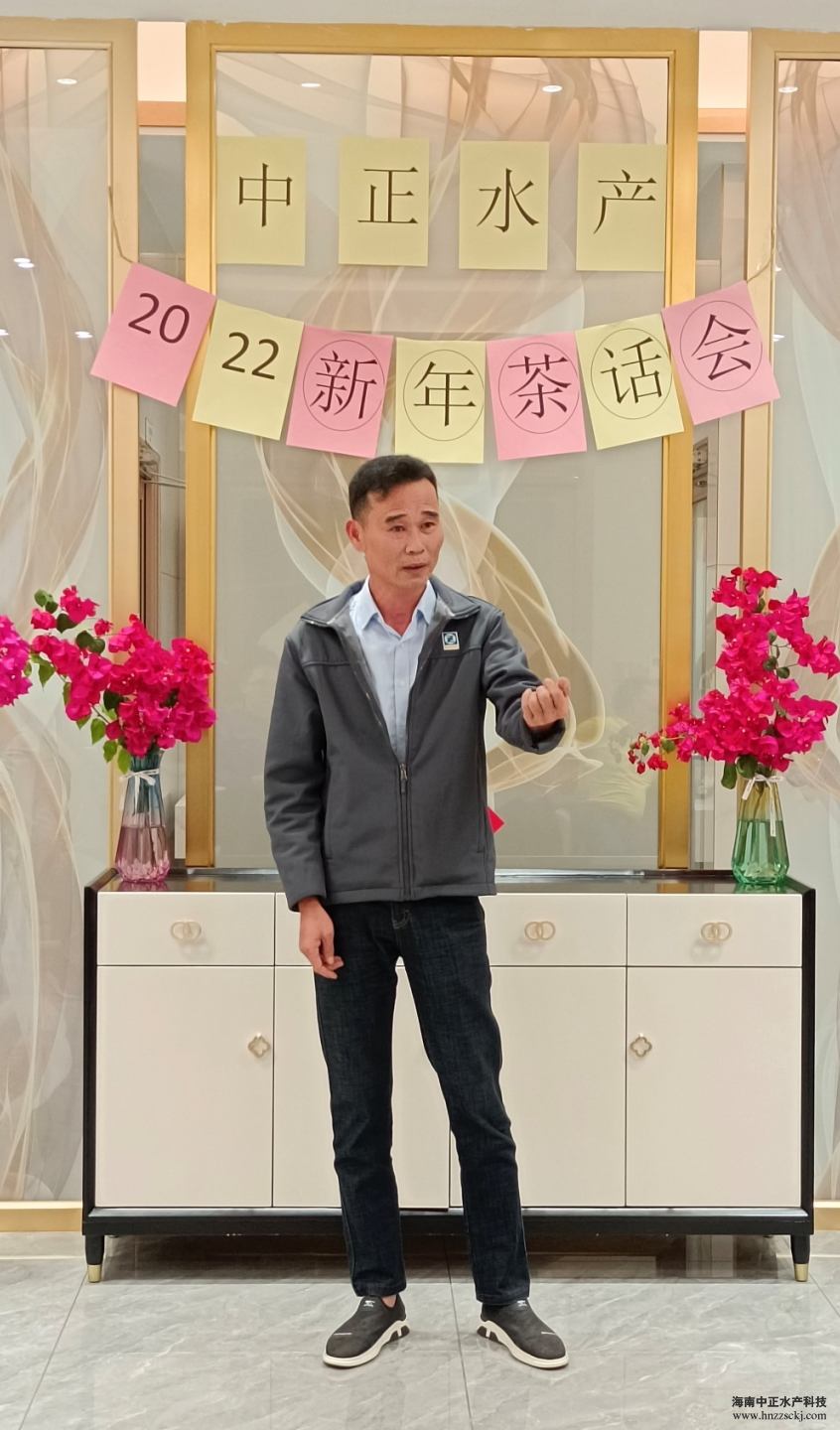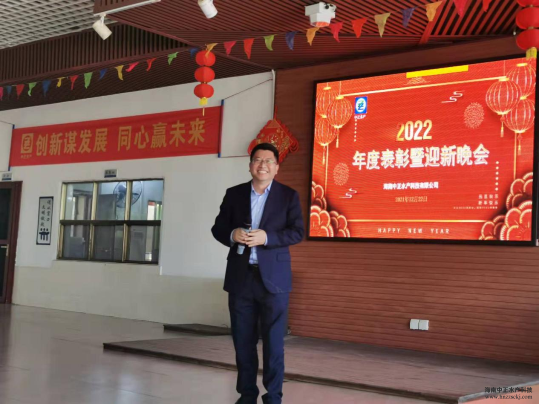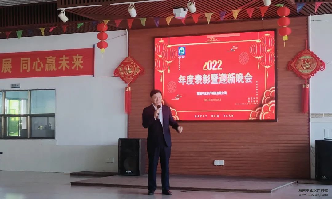 典礼在董事长雷夏雨精彩而温情的致辞中拉开了帷幕! “值此辞旧迎新之际,我谨代表公司各位领导,向全体员工致以新年的问候和良好的祝愿,向全体员工家属致以衷心的感谢和新年的祝福!对于2021年发生的一切,无论是困难还是成绩,我们都心怀感恩,感恩困难让我们成长,感恩每个员工的辛勤工作和无私奉献,希望我们在座的所有员工一起努力把中正打造成现代化的高科技水产企业。”
