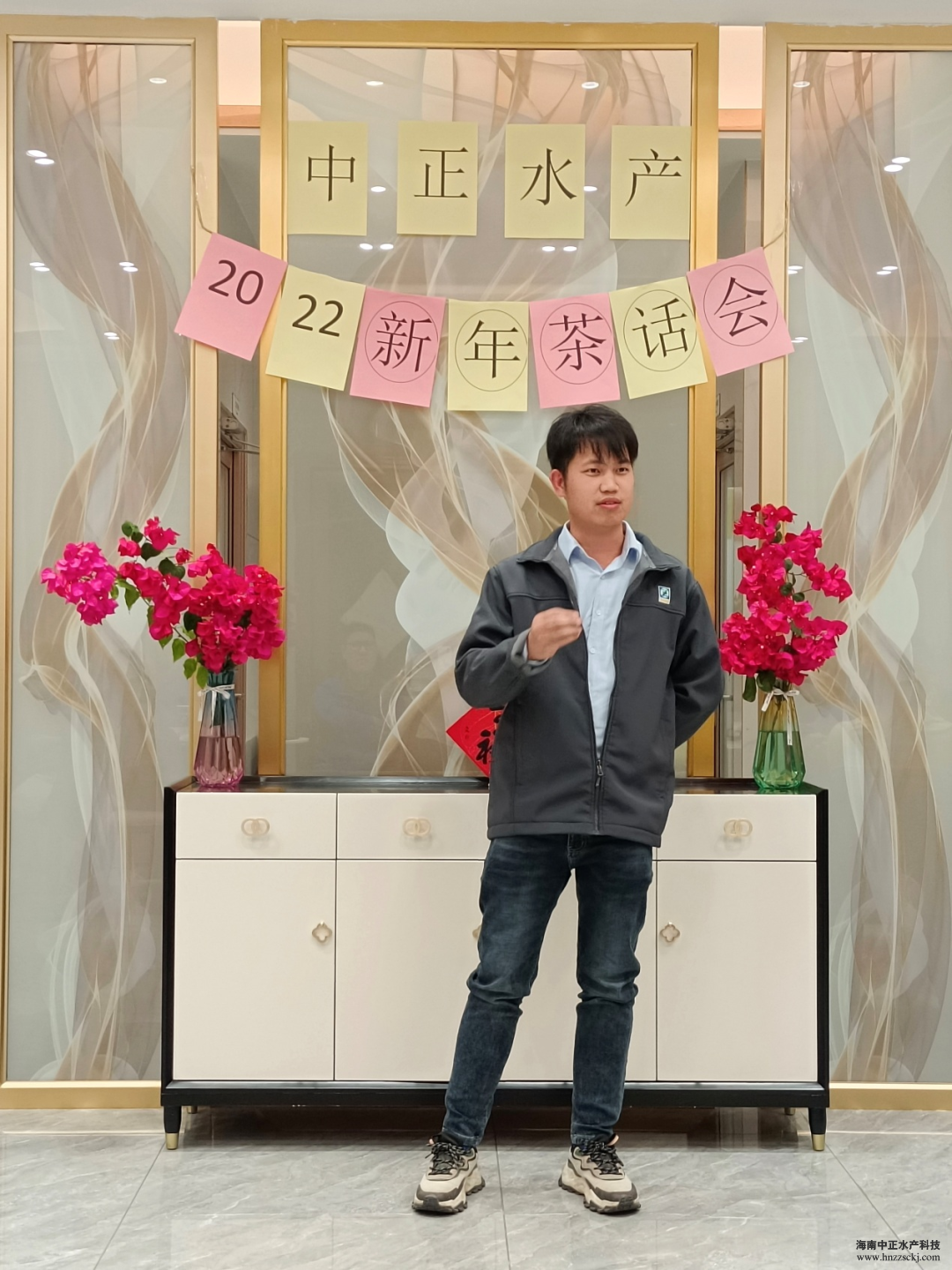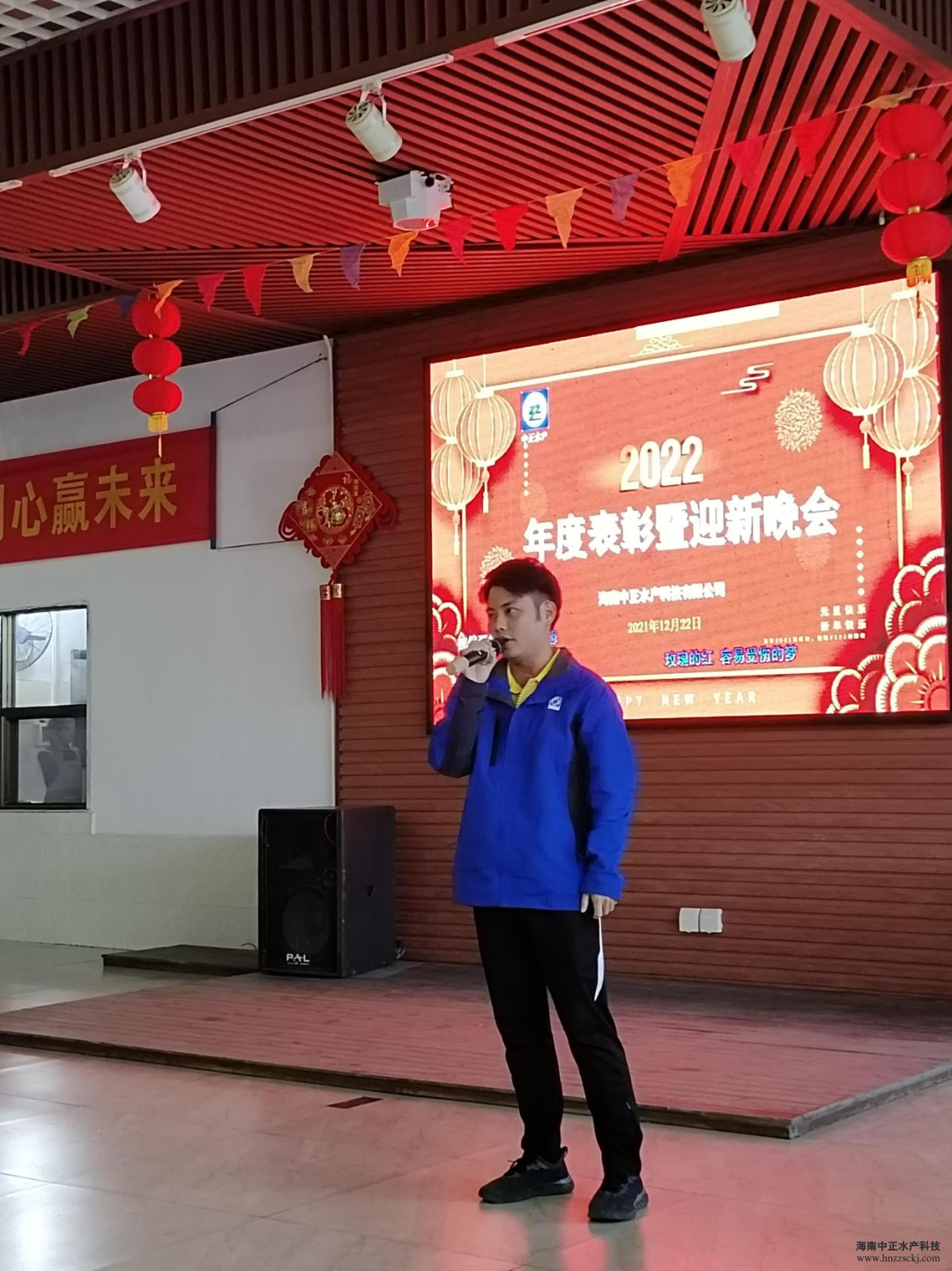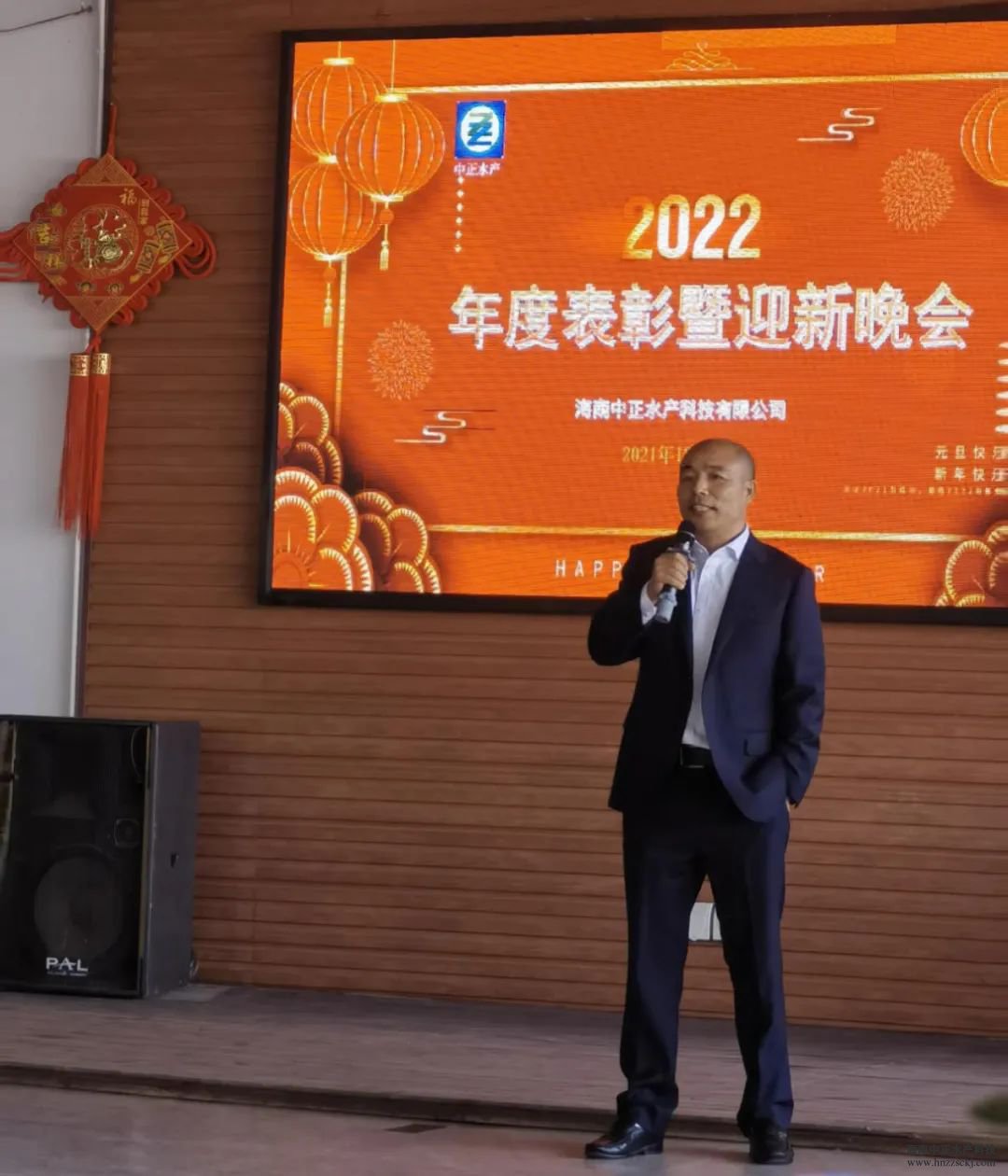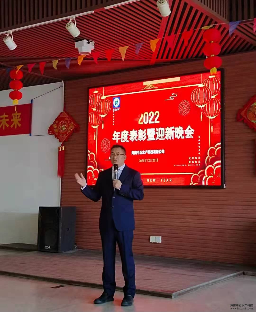 典礼在董事长雷夏雨精彩而温情的致辞中拉开了帷幕! “值此辞旧迎新之际,我谨代表公司各位领导,向全体员工致以新年的问候和良好的祝愿,向全体员工家属致以衷心的感谢和新年的祝福!对于2021年发生的一切,无论是困难还是成绩,我们都心怀感恩,感恩困难让我们成长,感恩每个员工的辛勤工作和无私奉献,希望我们在座的所有员工一起努力把中正打造成现代化的高科技水产企业。”